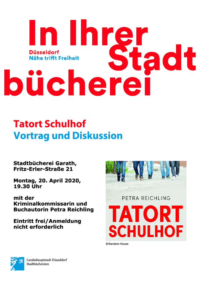 Zu einer exklusiven Lesung mit der Buchautorin Petra Reichling mit Ihrem zuletzt erschienen Buch „Tatort Schulhof“ lädt der Deutsche Beamtenbund, Stadtverband Düsseldorf, herzlich ein. Die Polizeihauptkommissarin Petra Reichling, die auch stellvertretende Vorsitzende des DBB Düsseldorf ist, möchte mit ihrem Buch Aufklärungsarbeit leisten und enthüllt anhand von schockierenden Fallgeschichten das Ausmaß dessen, was fast täglich auf unseren Schulhöfen passiert.